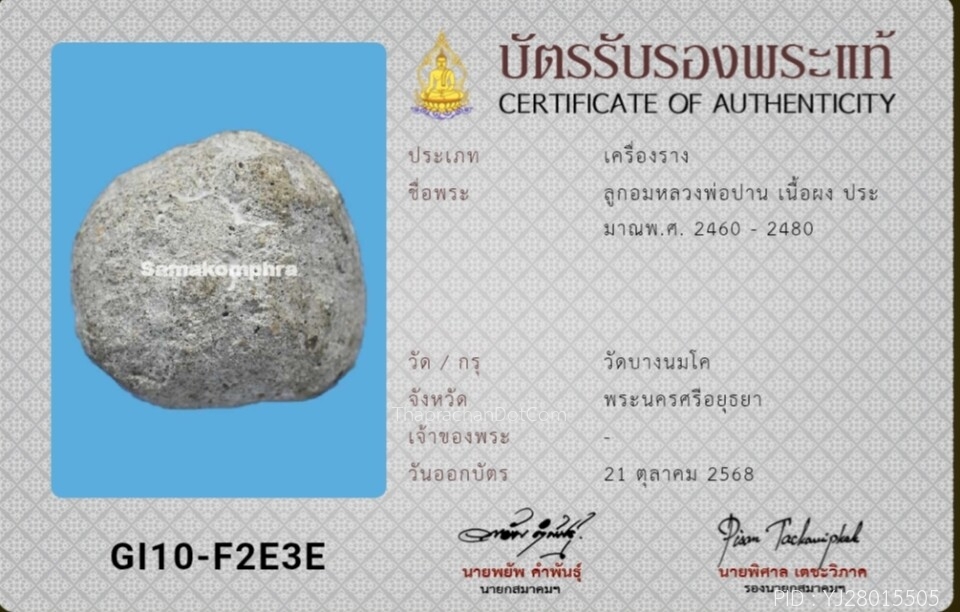 ลูกอมมหากัณฑ์หลวงพ่อคง วัดบางกะพ้อม พร้อมบัตรสมาคม