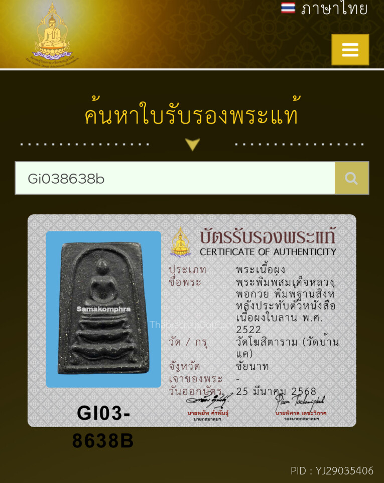 สมเด็จหลวงพ่อกวย พิมพ์ยันต์ห้าแถว เนื้อผง พ.ศ. 2521