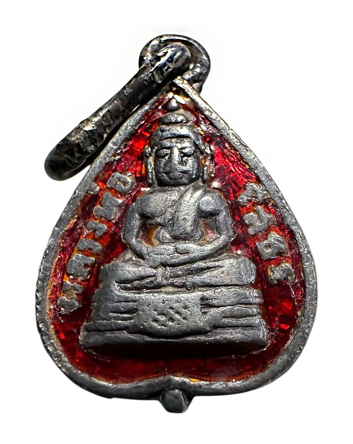 เหรียญใบโพธิ์เนื้อเงินลงยาสีแดงหลวงพ่อโสธรฯปี 2503