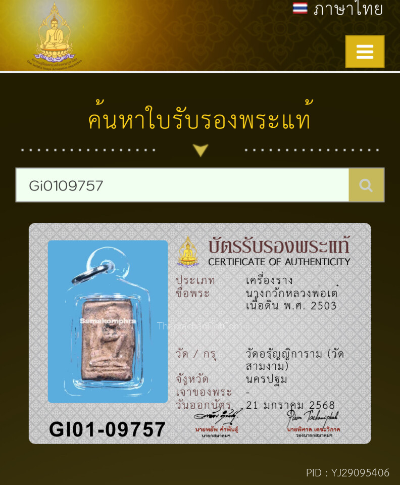 พระพุทธหลวงพ่อกวย พิมพ์เล็บมือ เนื้อผง พ.ศ.2515