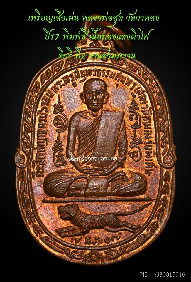 เหรียญหลวงพ่อสุด รุ่นเสือเผ่น ปี17 บล็อคเอ เนื้อทองแดงผิวไฟ
