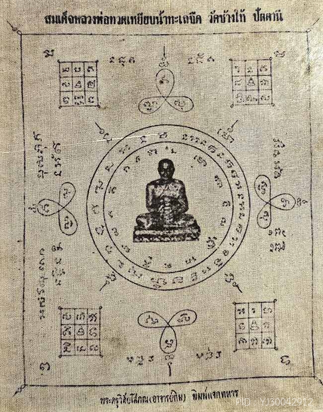 ผ้ายันต์ลายมือเท้า พ่อคลิ้ง วัดถุงทอง +ปั๊มตราวัด