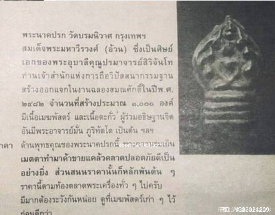 พระนาคปรกแสงอรุณ วัดบรมนิวาส ปี2495 อาจารย์มั่นปลุกเสก