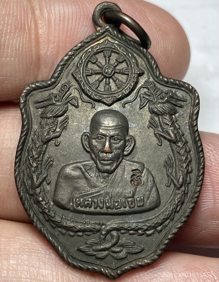เหรียญมังกรคู่ หลวงพ่อเอีย วัดบ้านด่าน จ.ปราจีนบุรี ปี 2517