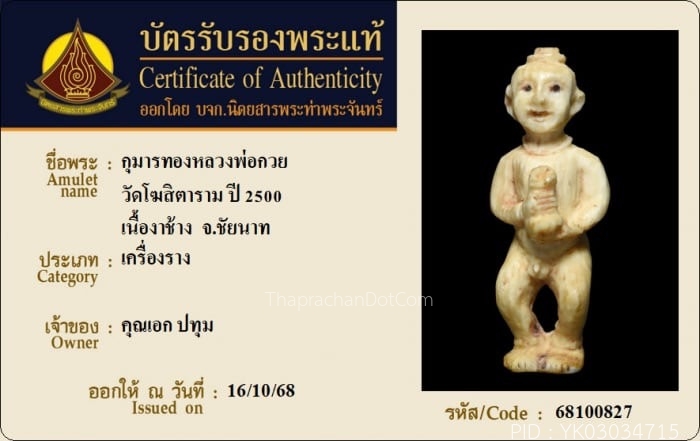 กุมารทองหลวงพ่อกวย วัดโฆษิตาราม เนื้องาแกะ