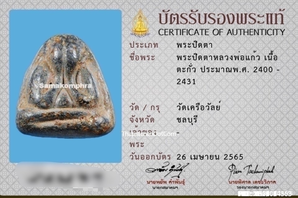 พระปิดตาหลวงพ่อแก้ว วัดเครือวัลย์ เนื้อตะกั่ว หลังจาร
