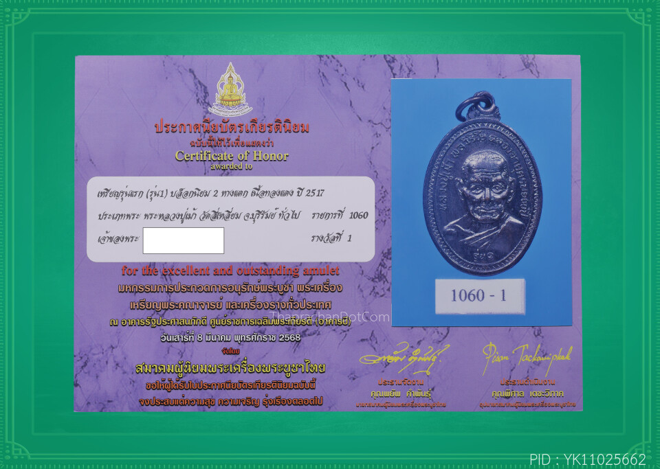เหรียญรุ่นแรก รุ่น.1 หลวงปู่เม้า วัดสี่เหลี่ยม จ.บุรีรัมย์