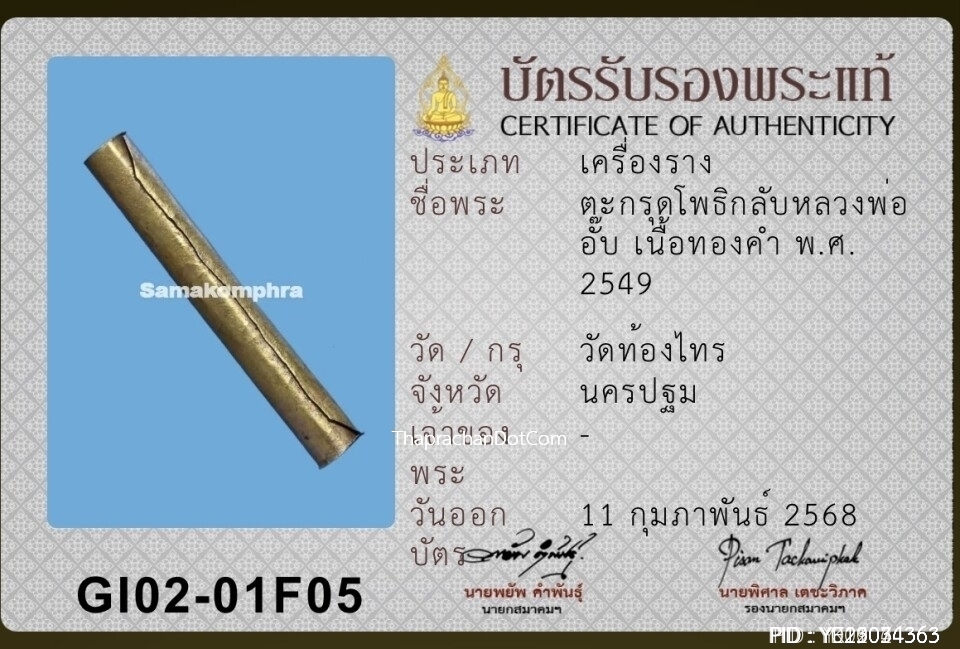 ตะกรุดโพธิ์กลับ หลวงพ่ออั๊บ วัดท้องไทร ปี2549 เนื้อทองคำ
