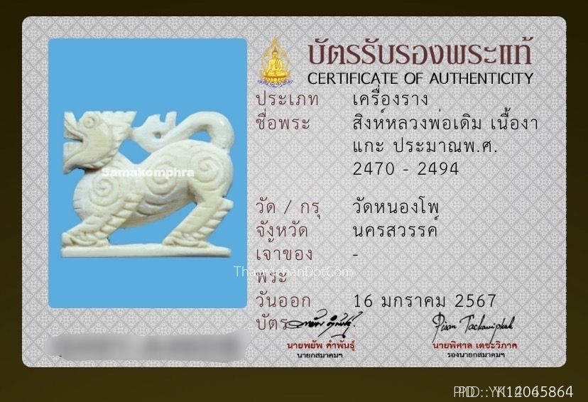 สิงห์สามขวัญหลวงพ่อเดิม วัดหนองโพ จ.นครสวรรค์