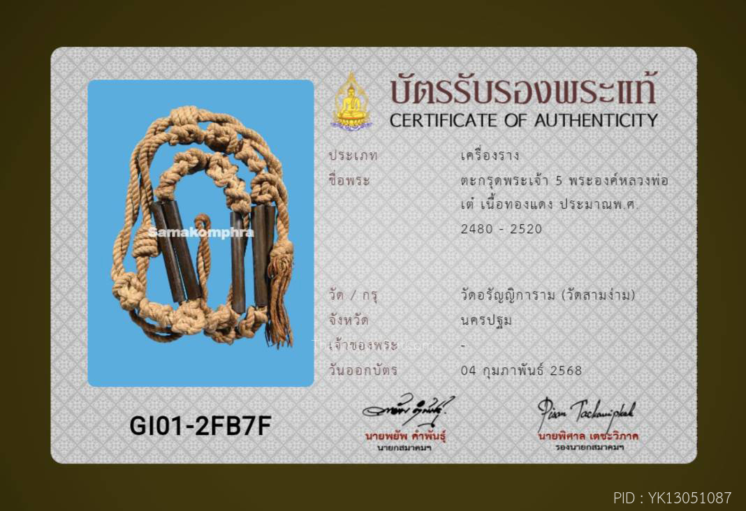 ตะกรุดพระเจ้า5พระองค์หลวงพ่อเต๋วัดสามง่ามนครปฐม