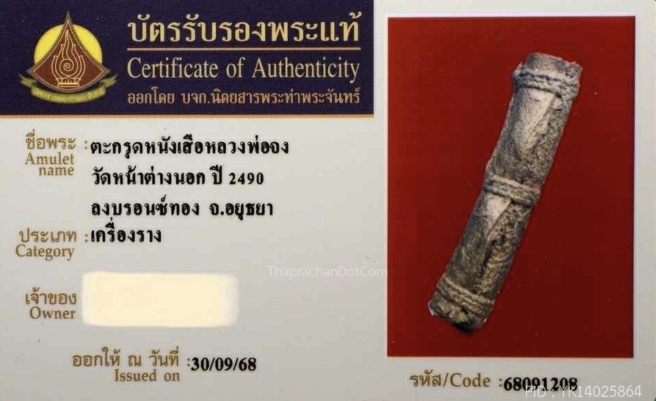 ตะกรุดหลวงพ่อกลั่น วัดพระญาติ จ.อยุธยา