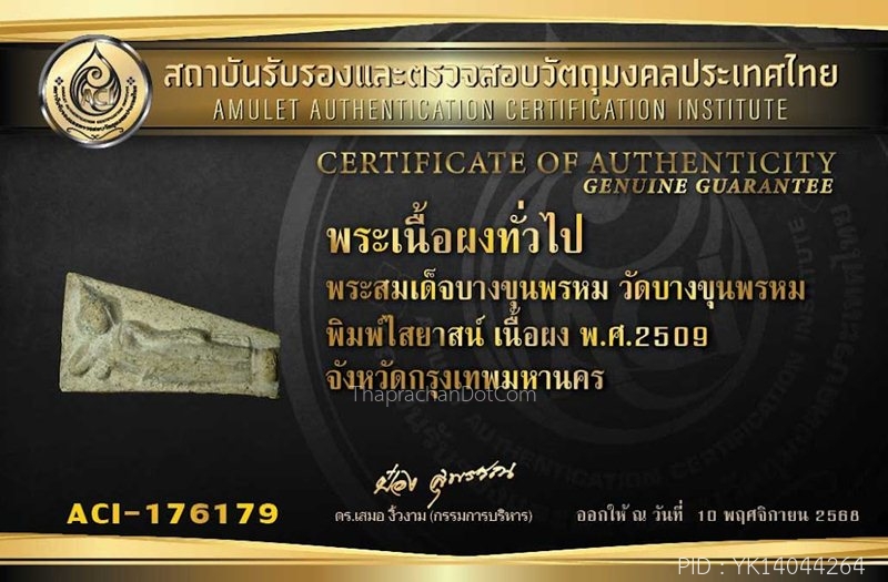 บางขุนพรหม ปี พ.ศ.2509 พิมพ์ไสยาสน์ พร้อมบัตรรับรอง
