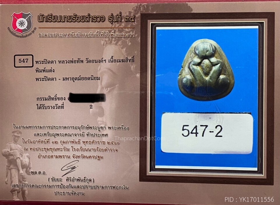 พระปิดตาเมฆสิทธิ์ หลวงพ่อทับ วัดอนงค์ พิมพ์ต้อแต่ง สวยมากๆ