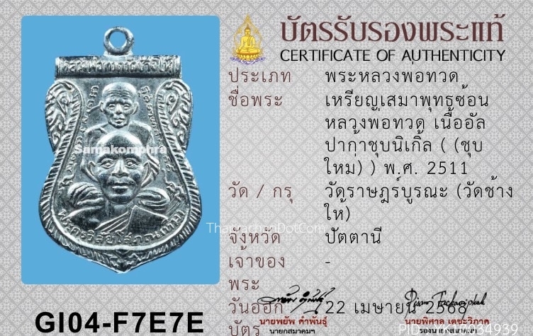 เหรียญหลวงปู่ทวดพุฒซ้อน วัดช้างให้ เนื้ออัลปาก้า ปี2511