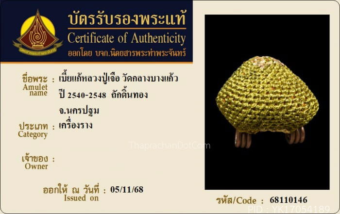 พระขุนแผนเคลือบ รุ่นสมบูรณ์ทรัพย์ ปี2545 หลวงปู่ชื้น