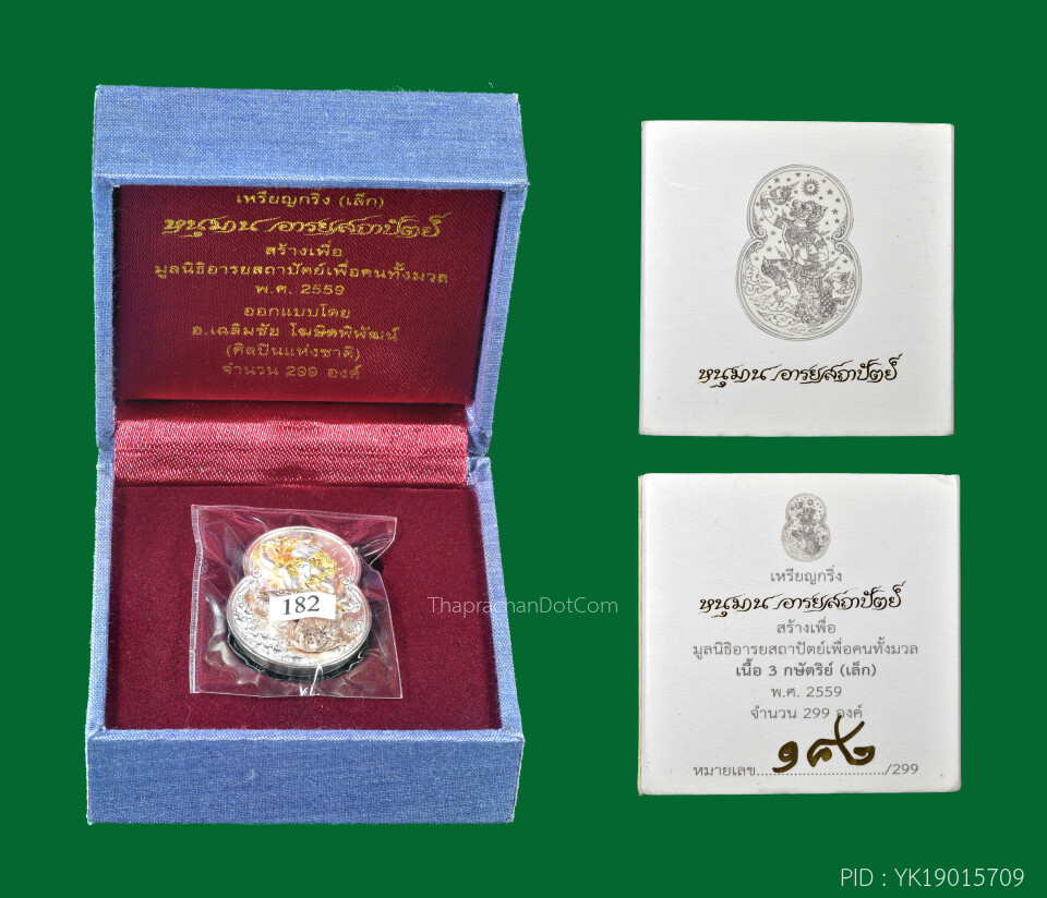 เหรียญกริ่งหนุมาน อารยะสถาปัตย์ พิมพ์ใหญ่ เนื้อเงินรมดำ