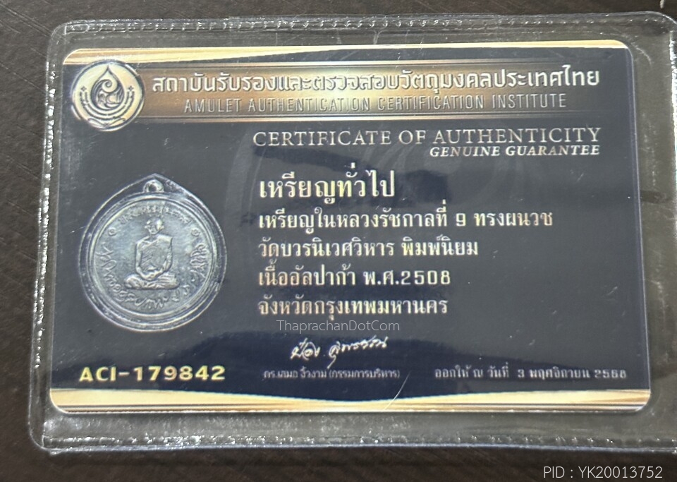 เหรียญในหลวงทรงผนวช 08 อัลปาก้า บล๊อกนิยม พร้อมทอง