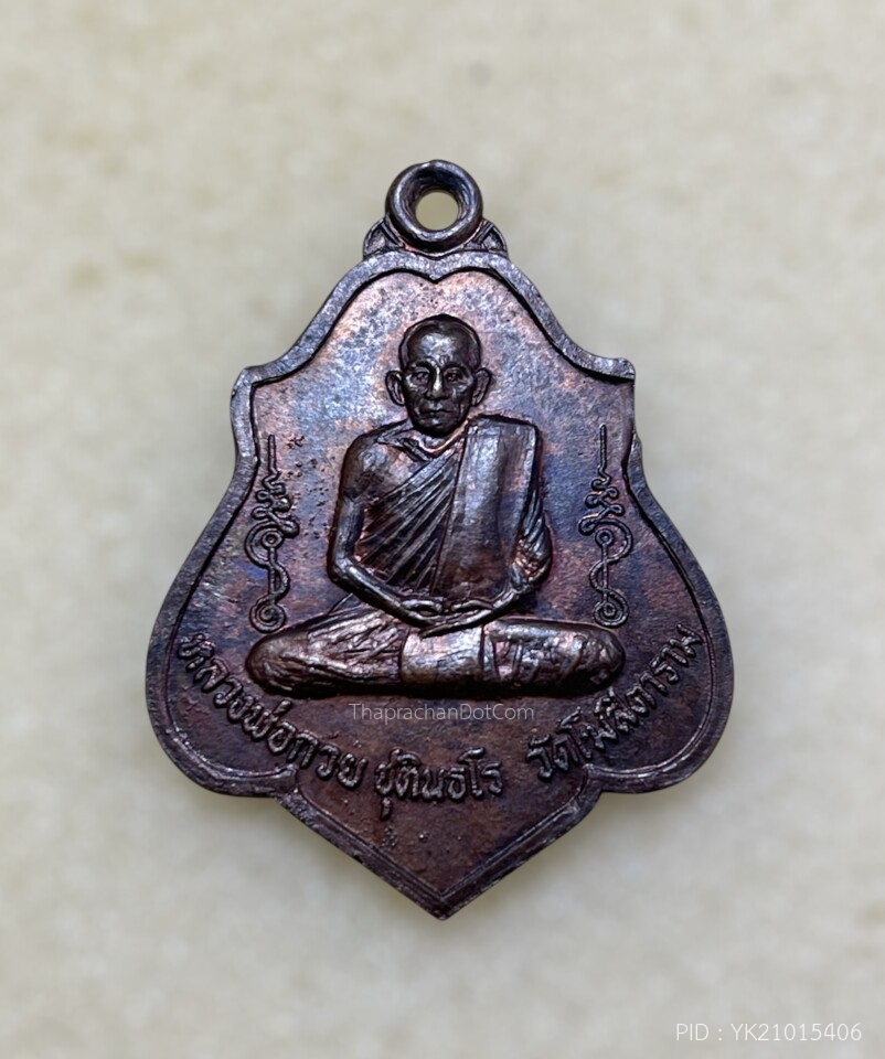 เหรียญหลวงพ่อกวย รุ่นยกช่อฟ้า เนื้อทองแดง พ.ศ. 2515