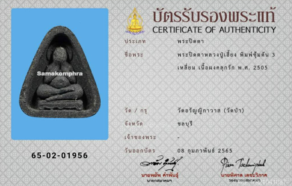 พระปิดตาหลวงปู่เฮี้ยงวัดป่าฯปี2505พิมพ์ซุ้มตันสามเหลี่ยม