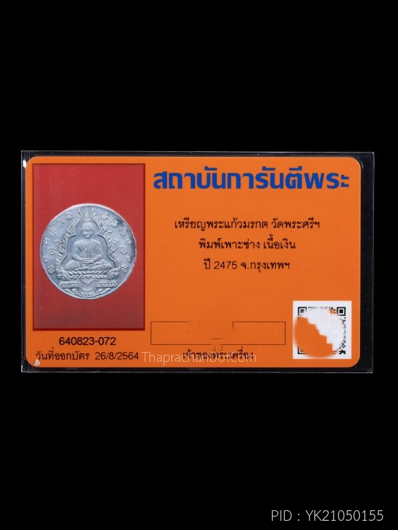เหรียญพระแก้วมรกต ปี 2475 เนื้อเงิน บล็อกเพาะช่าง