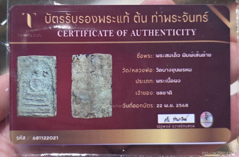 พระสมเด็จบางขุนพรหม พิมพ์เส้นด้าย พ.ศ.2413 บัตรครบทุกสถาบัน