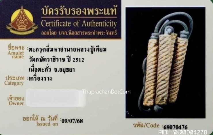 ตะกรุดสี่มหาอำนาจหลวงปู่เทียม วัดกษัตราธิราช อยุธยา