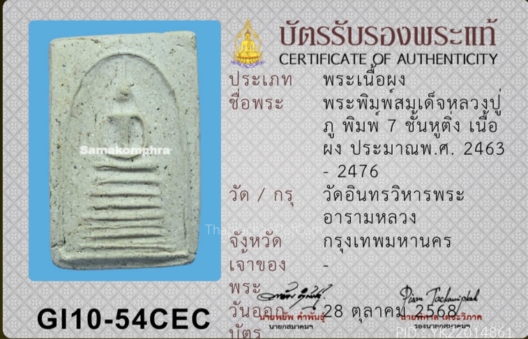 สมเด็จวัดเกศไชโย พิมพ์ 7 ชั้นแขนกลม (หายาก) บัตรสมาคม