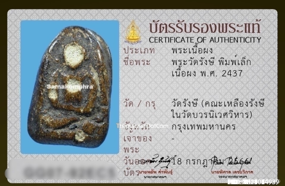 พระผงวัดรังษีสุทธาวาส พิมพ์เล็ก