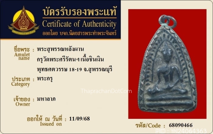พระสุพรรณหลังผาน กรุวัดพระศรีรัตนฯ เนื้อชินเงิน