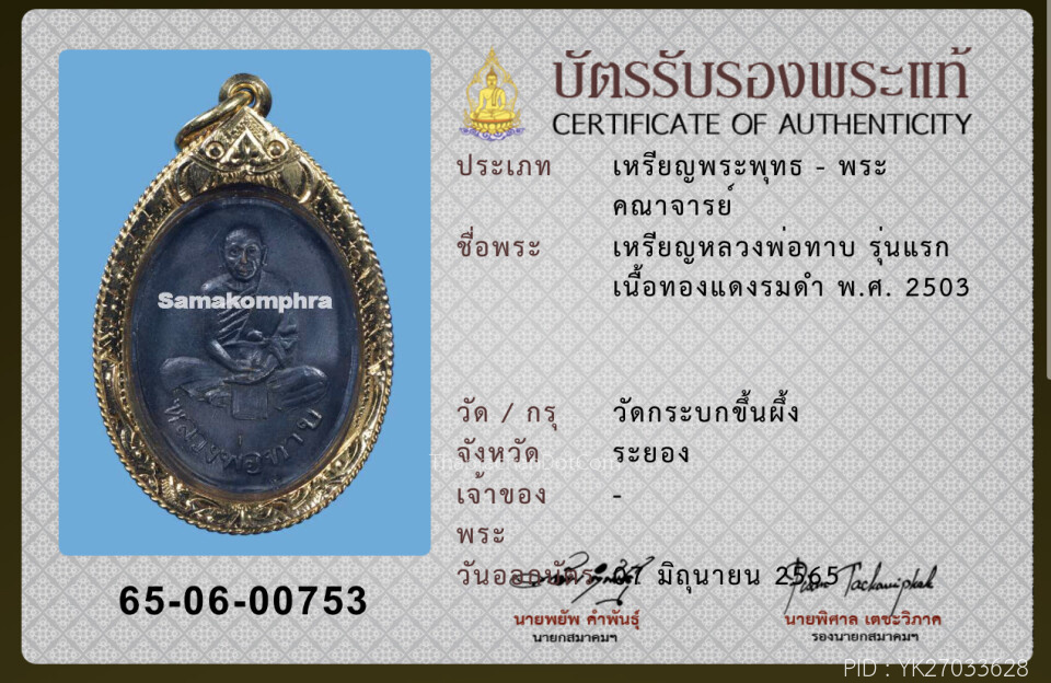 เหรียญหล่อรุ่นแรก หลวงพ่อทอง วัดเขาตะเครา จ.เพชรบุรี ปี 2465