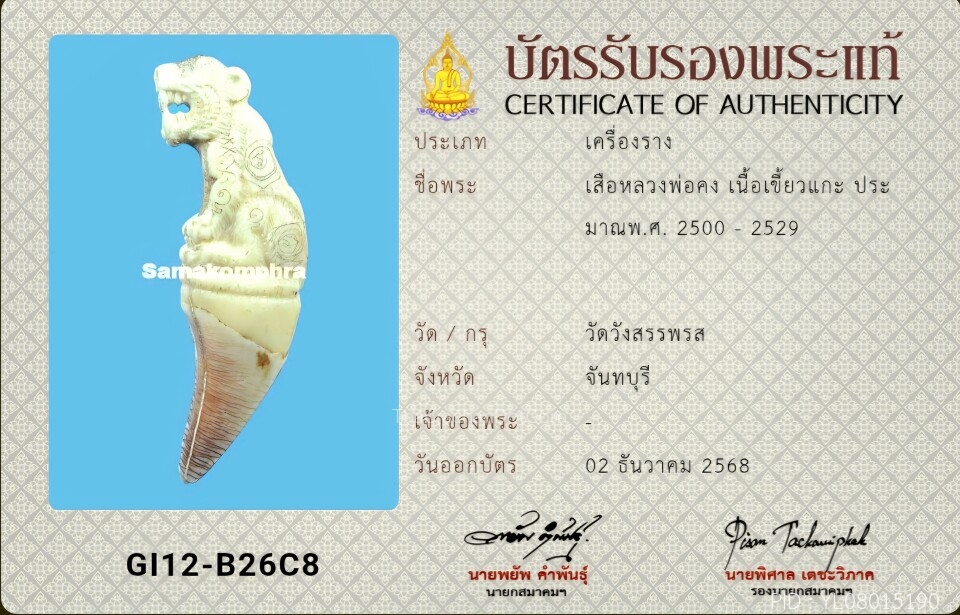 เสือหลวงพ่อคงวัดวังสรรพรสแกะจากเขี้ยวเสือไฟ แชมป์ๆ จี๊ดๆ