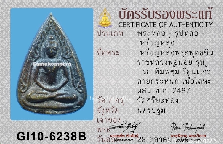 รูปหล่อพระพุทธชินราช วัดสุทัศน์ รุ่นอินโดจีน ปี2485
