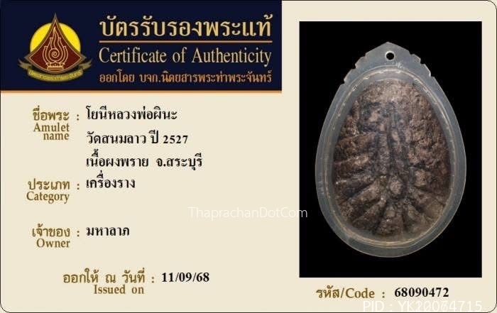 ล็อคเก็ตพระพุทธเจ้า หลวงพ่อผินะ วัดสนมลาว จ.สระบุรี
