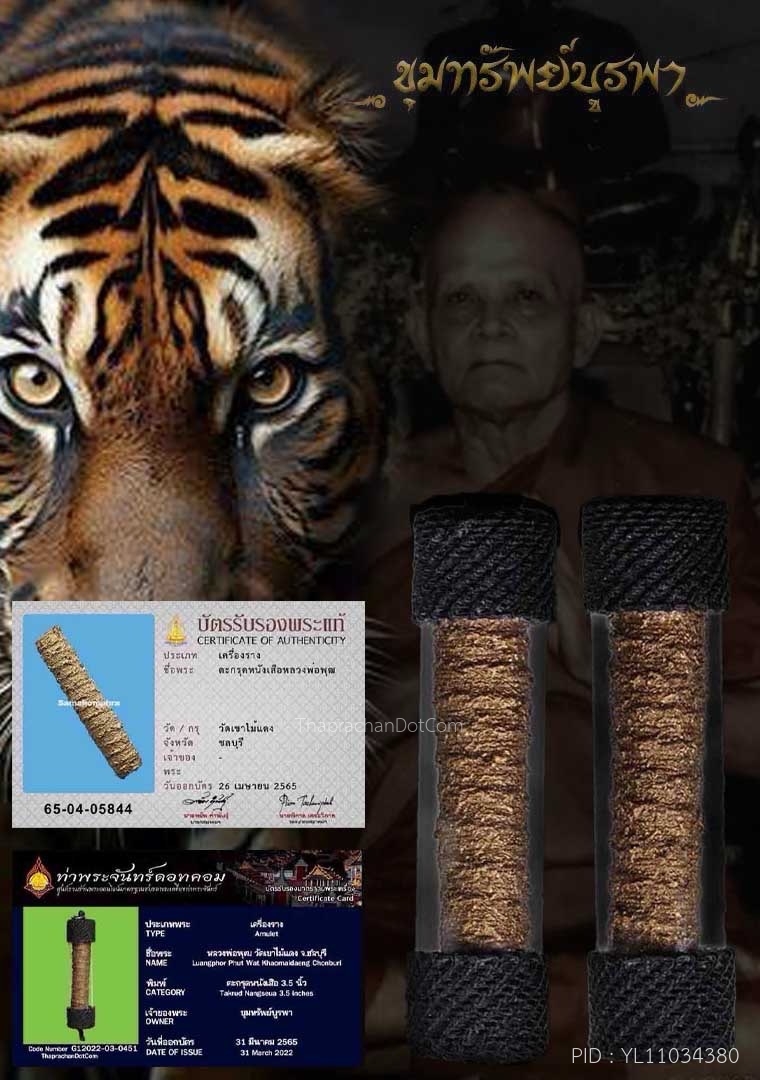 ตะกรุดหนังเสือ หลวงพ่อพุฒวัดเขาไม้แดง ชลบุรี