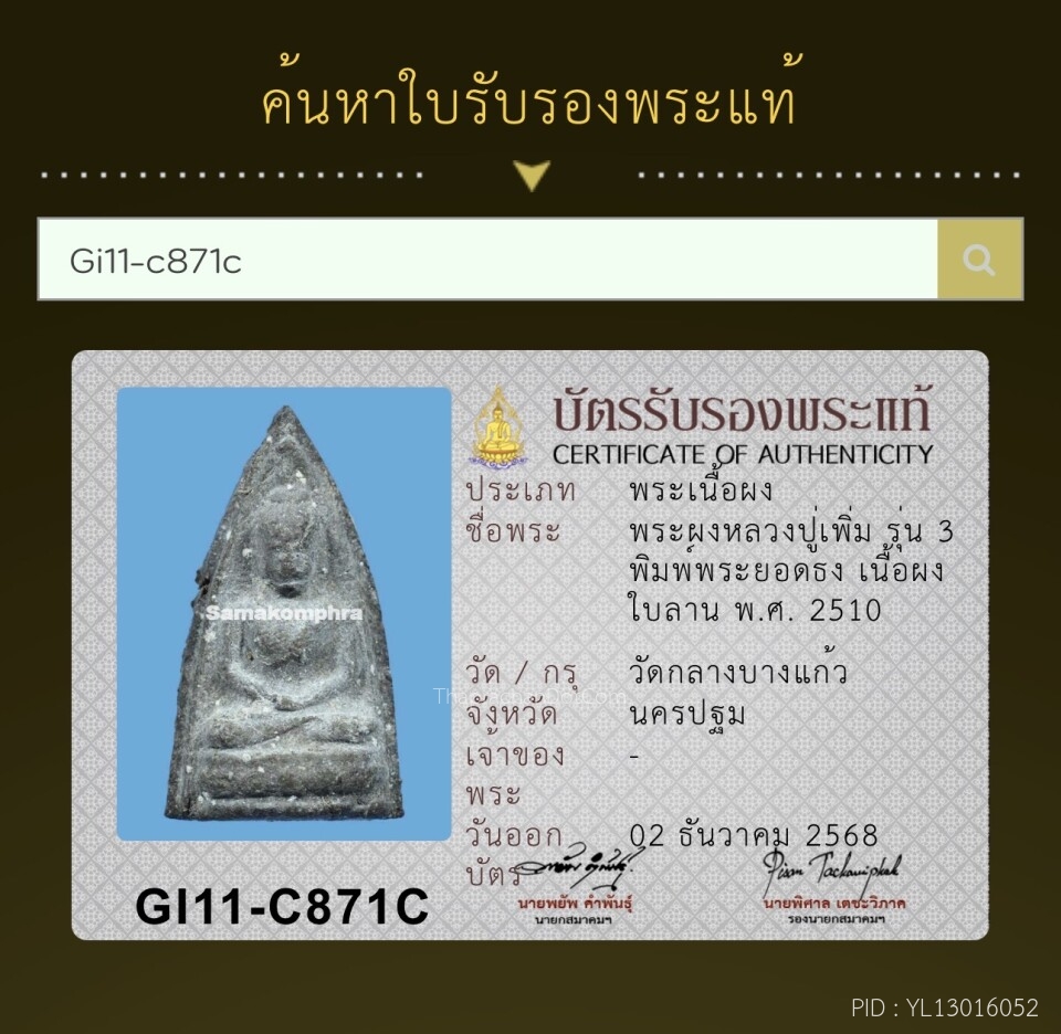 พระยอดธง หลวงพ่อเพิ่ม วัดกลางบางแก้ว ปี 2510