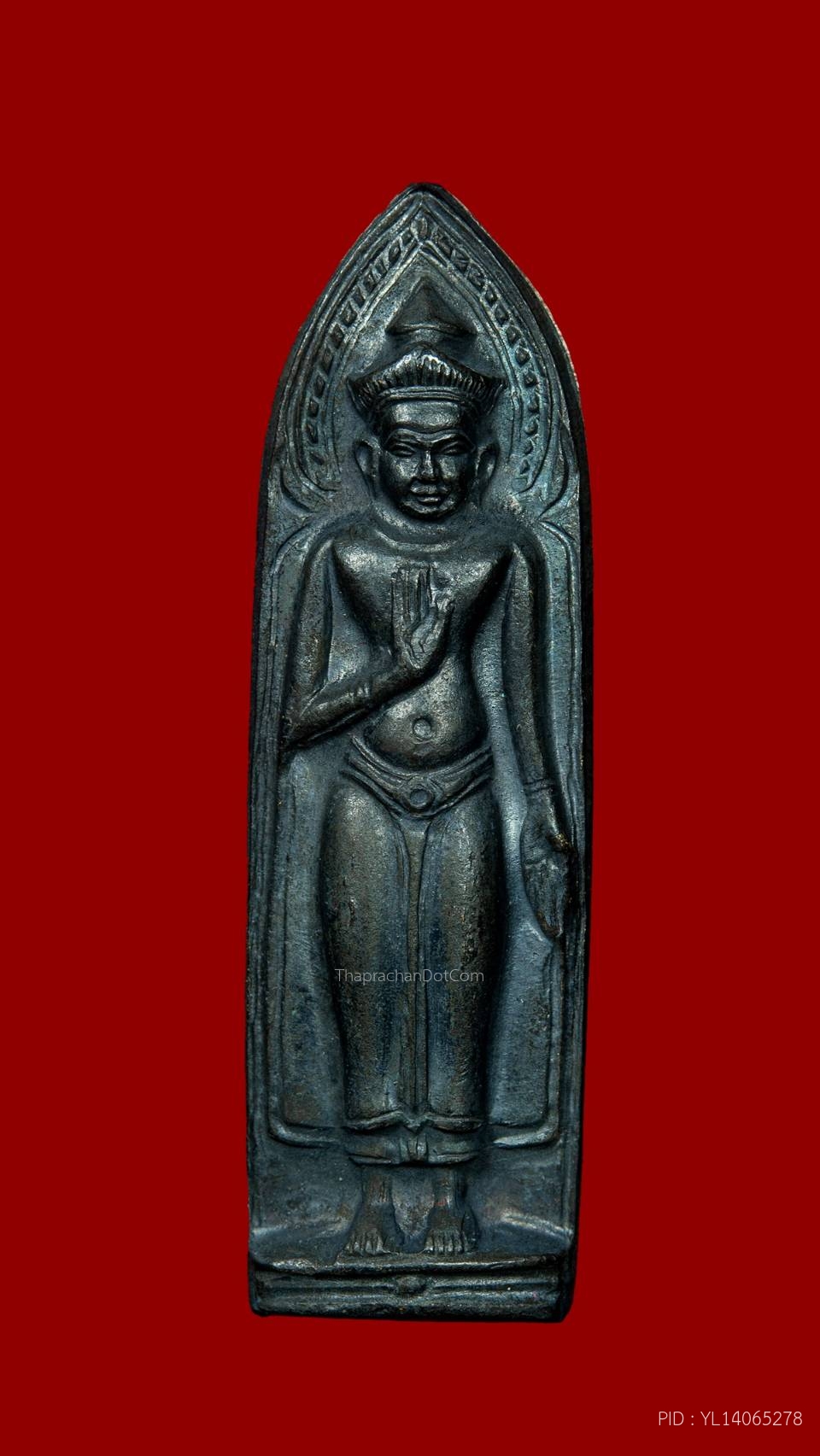 พระลีลากำแพงศอก หลวงพ่อขอม พร้อมกรอบและฐานหล่อกะไหล่ทอง