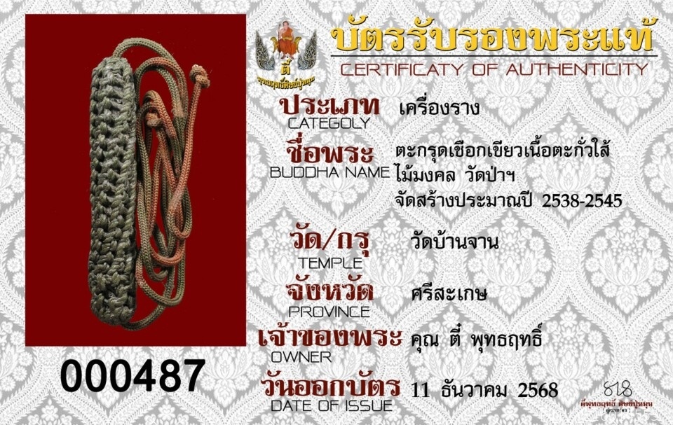 หลวงปู่หมุนตะกรุดเชือกเขียวหูเดี่ยวใส้ไม้พญาใส้ตัน