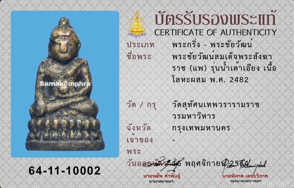 พระชัยวัฒน์น้ำเต้าเอียง สมเด็จพระสังฆราช(แพ) 2482