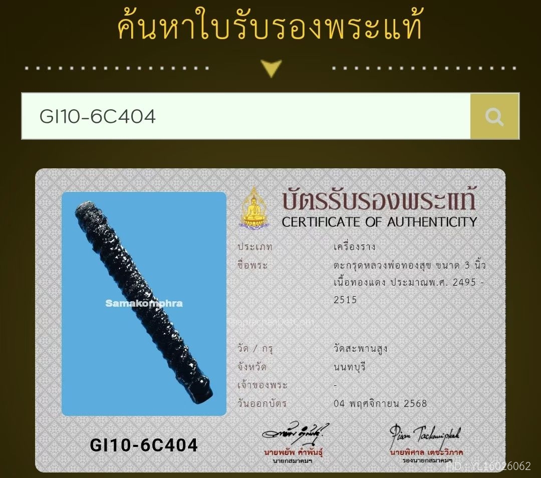 ตะกรุดทองคำแท้ หลวงพ่อคูณ ปี2537