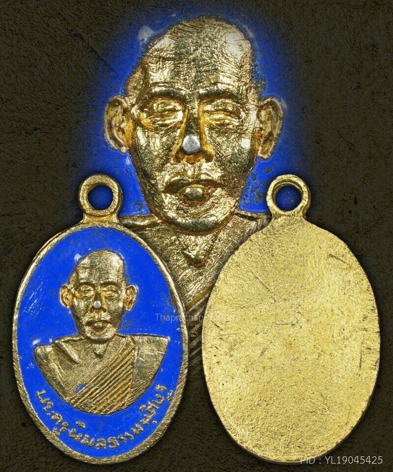 เหรียญ ลพ.ขวัญ วัดบ้านไร่ เนื้อกะไหล่ทองลงยาสีฟ้า ปี2518