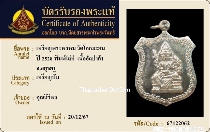 พระพรหมหลวงปู่ดู่ วัดโคกมะยม ปี 2528 เนื้ออัลปาก้า