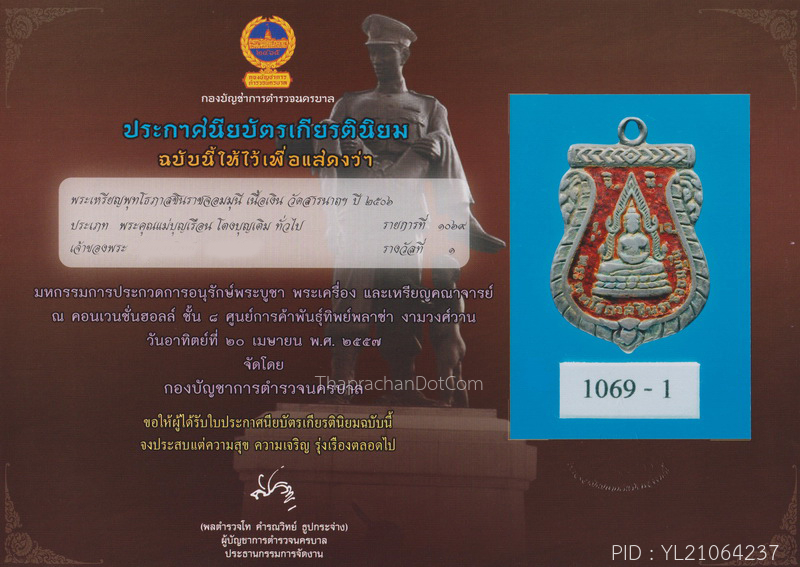 พระบูชาหลวงพ่อยิด วัดหนองจอก (เนื้อเงิน หมายเลข ๘)