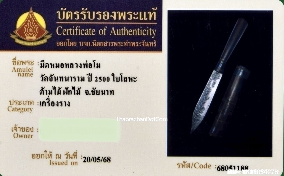 มีดหมอหลวงพ่อโม วัดจันทนาราม จ.ชัยนาท ปี2500