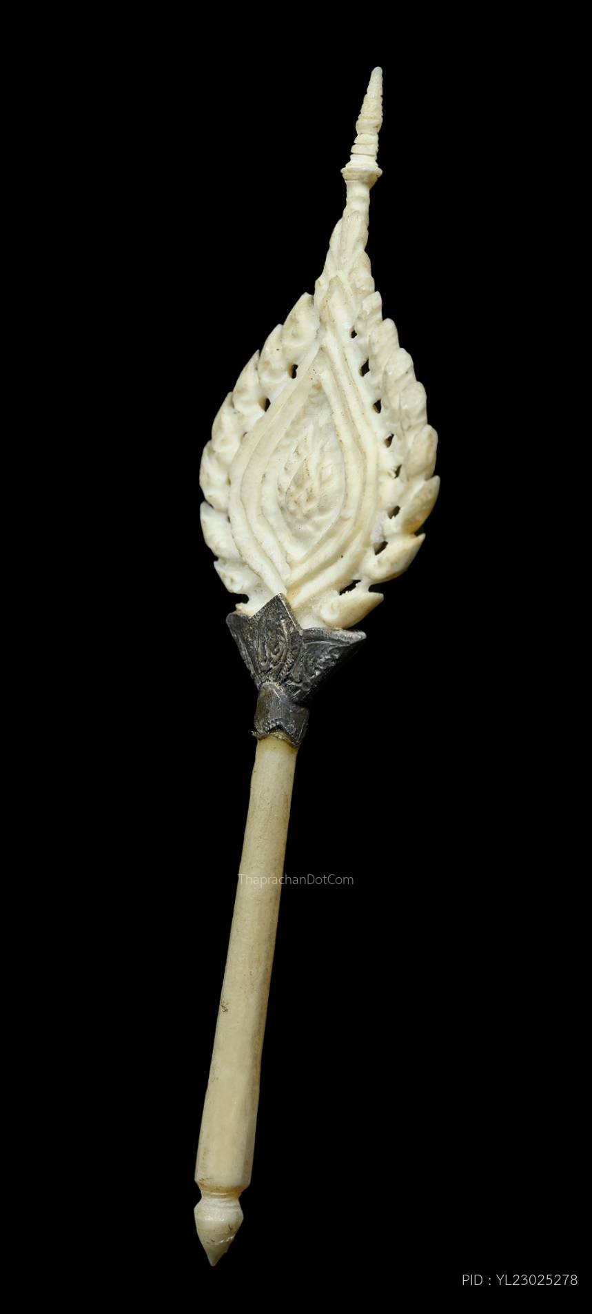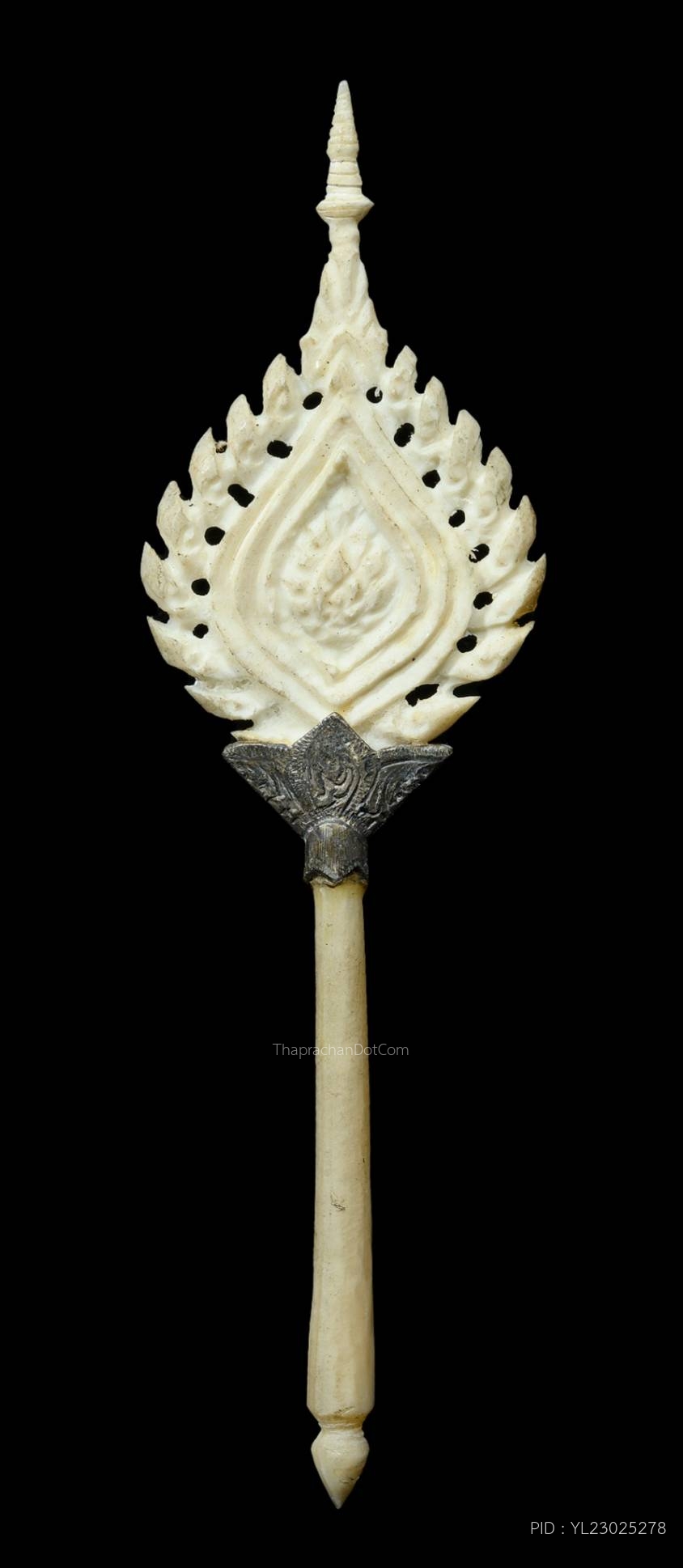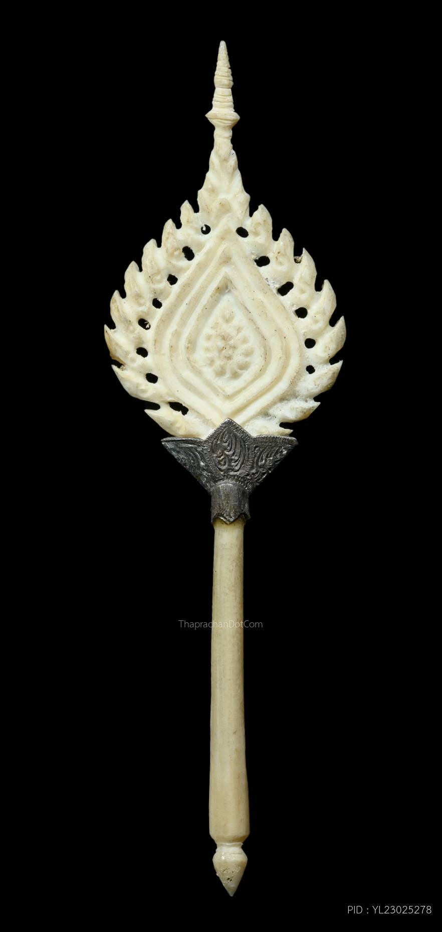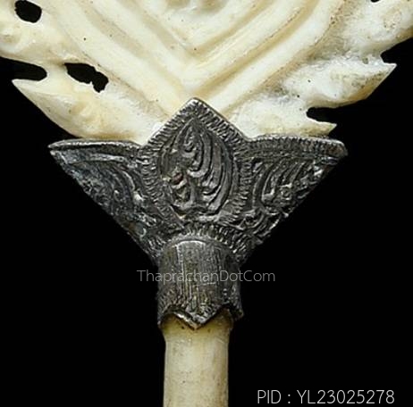 ตาลปัดงาแกะ ตรงกลางเป็นเงินแกะลาย งานเก่าโบราณ