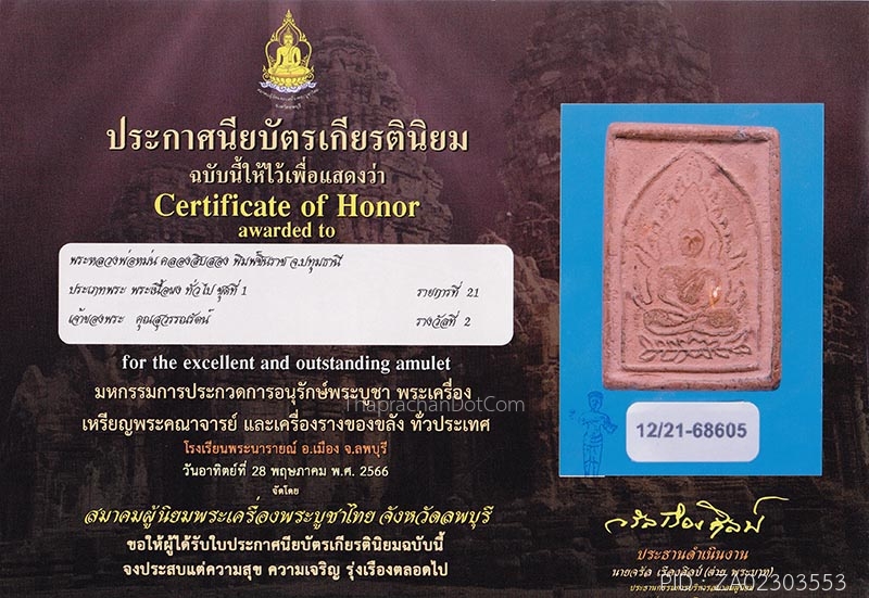 พระพุทธชินราชอินโดจีน วัดสุทัศน์ ปี85 พิมพ์แต่งมีโค๊ต(#19)