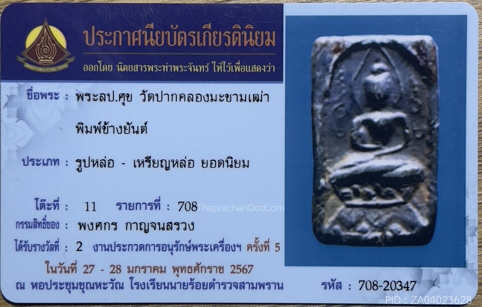 หลวงปู่ศุข วัดปากคลองมะขามเฒ่า พิมพ์วัดหัวหาด ชะลูด