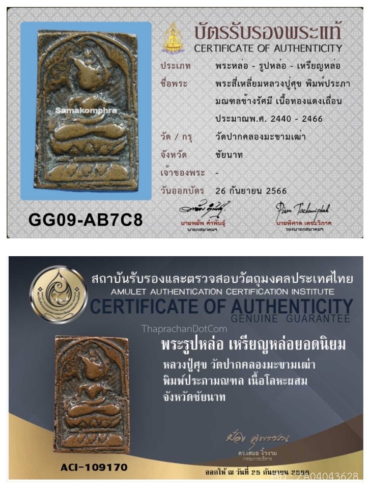 หลวงปู่ศุข วัดปากคลองมะขามเฒ่า พิมพ์วัดหัวหาด ชะลูด