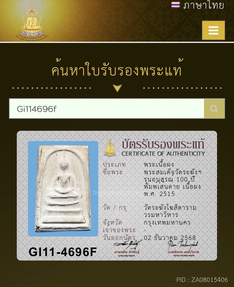 หลวงพ่อกวย พิมพ์ซุ้มระฆังหลังสิงห์ เนื้อผงแตกลายงา พ.ศ. 2521