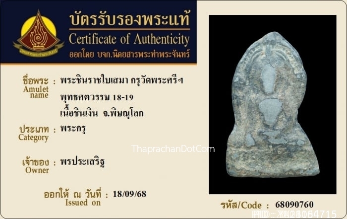 พระชินราชใบเสมา กรุวัดพระศรีฯ เนื้อชินเงิน จ.พิษณุโลก