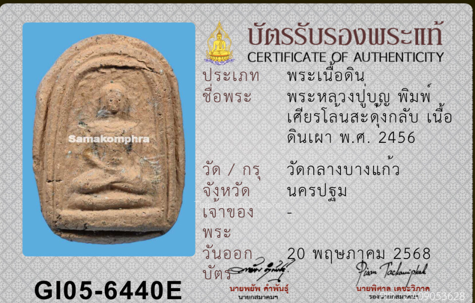 พระพิมพ์สมาธิซุ้มรัศมี หลวงปู่บุญ วัดกลางบางแก้ว ปี 2456